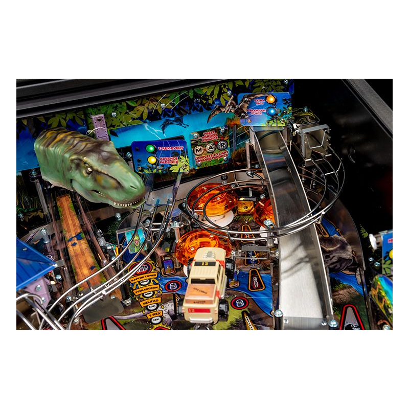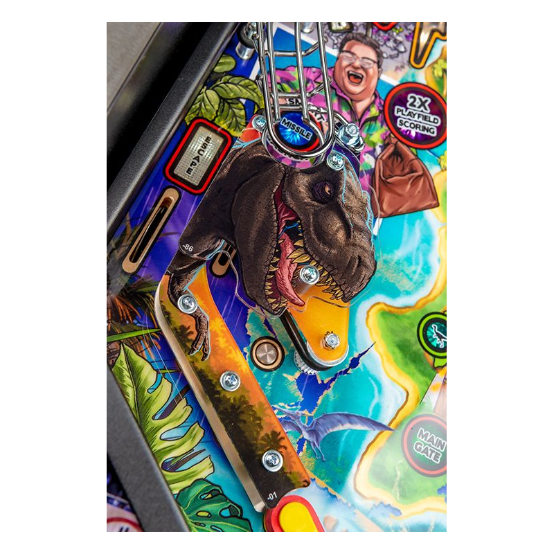 La version Premium du flipper Jurassic Park se distingue par ses toys motorisés et éléments interactifs exclusifs, qui rendent le plateau plus vivant que jamais. Les joueurs peuvent activer des missions spéciales, lancer des multiballs spectaculaires et interagir avec des éléments emblématiques du film, tels que les véhicules du parc ou les enclos des dinosaures, pour une expérience de jeu unique et stratégique.