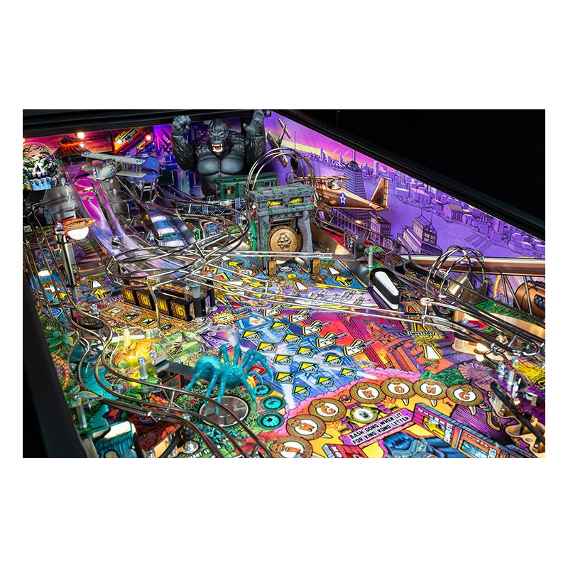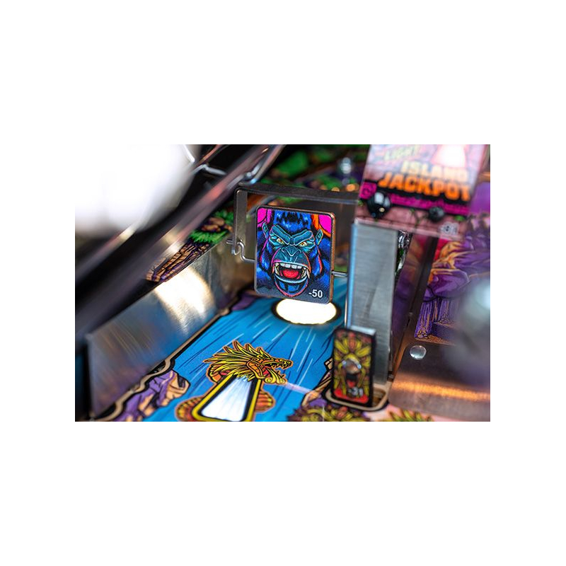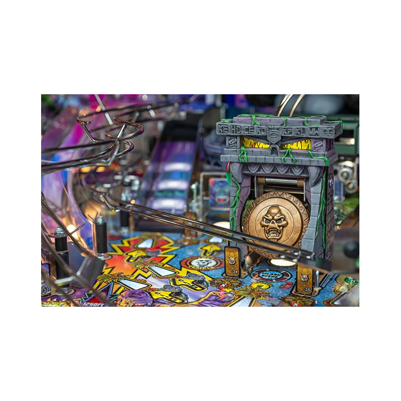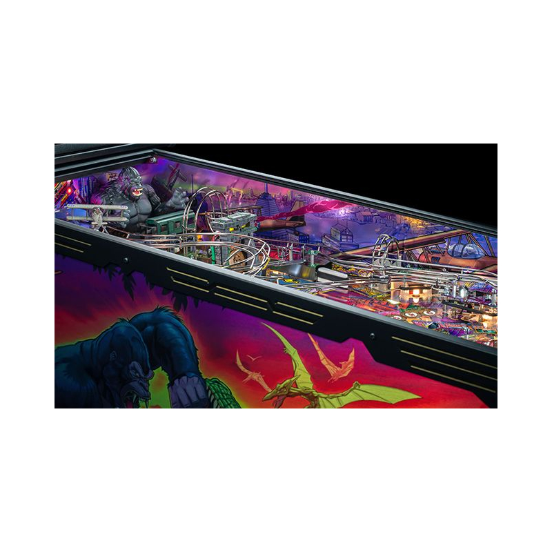 Dans cet univers sauvage, les joueurs explorent Terror Island à travers une aventure scénarisée riche en rebondissements. Chaque partie propose des missions stratégiques, des affrontements intenses et des phases de multiball spectaculaires, où il faut survivre aux dangers de l'île et affronter Kong dans des séquences de jeu impressionnantes. Le système électronique Spike 2 et l'écran LCD couleur haute définition renforcent l'immersion avec des animations dynamiques et des effets sonores puissants.