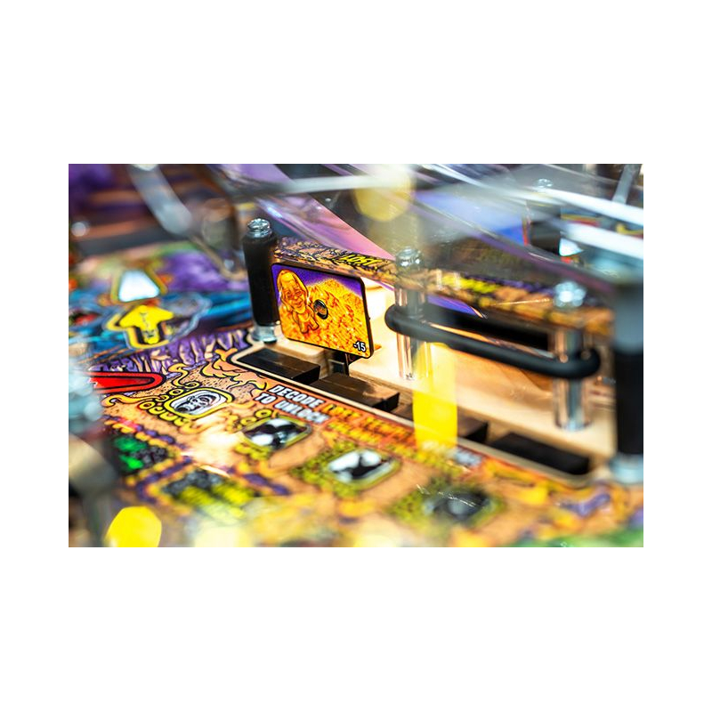 Le fronton miroir, les side armor personnalisés et les finitions haut de gamme donnent à cette machine une présence visuelle exceptionnelle. Chaque détail est conçu pour faire de ce flipper une pièce centrale dans une collection ou un espace gaming premium.