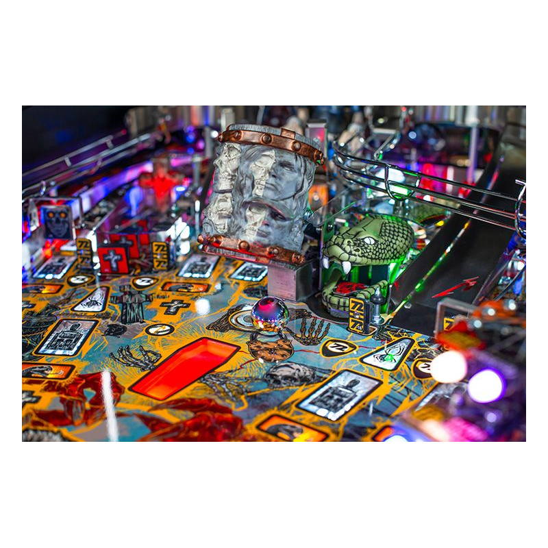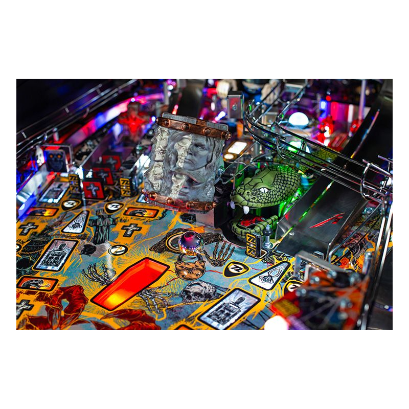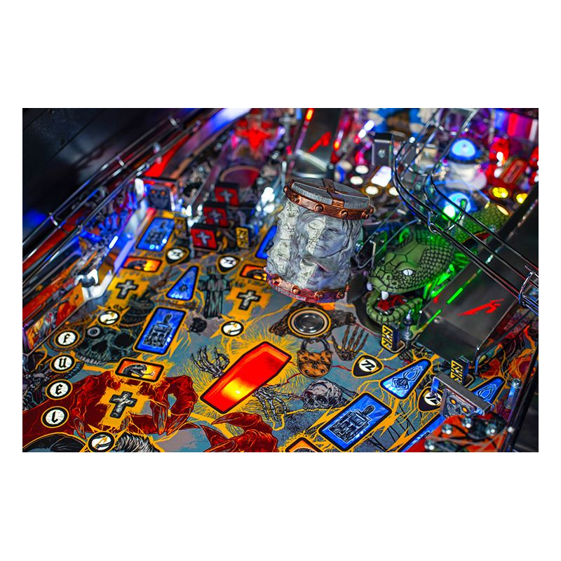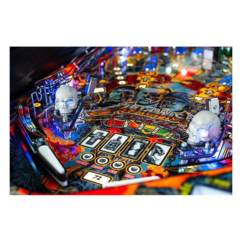 Le plateau dynamique de ce flipper métallica avec rampes, boucles et cibles stratégiques, offre une expérience de jeu immersive, parfaite pour les fans de Metallica comme pour les amateurs de flippers exigeants. Chaque partie devient un véritable concert de sensations et d'adrénaline.
