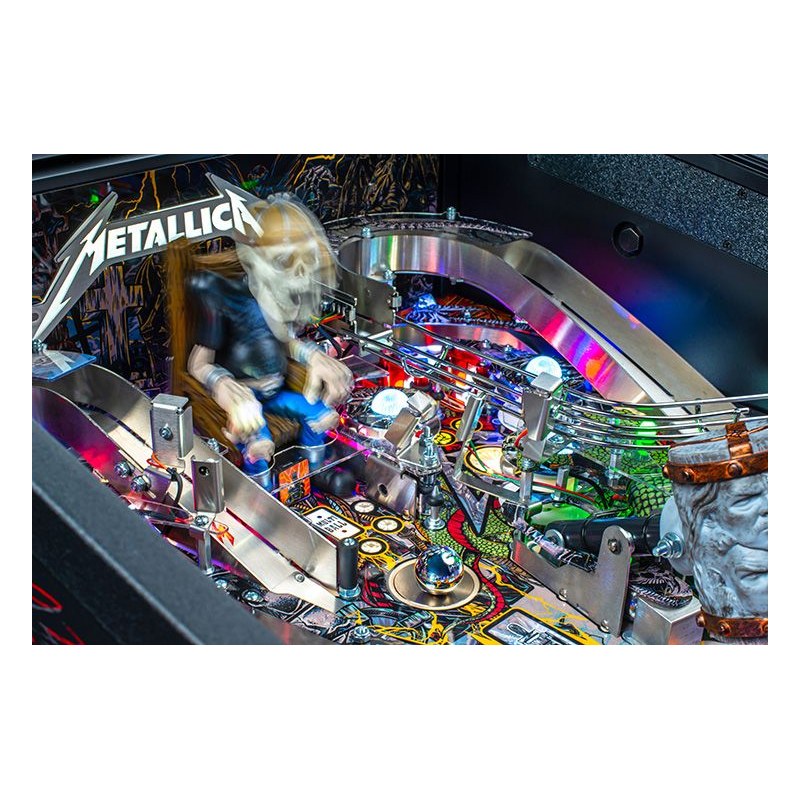 Le Flipper Metallica Remastered édition Premium de Stern Pinball plonge les joueurs au cœur de l'univers légendaire du groupe Metallica. Cette version Premium offre une expérience de jeu immersive et spectaculaire, alliant mécaniques interactives avancées, toys animés exclusifs et graphismes inspirés des albums emblématiques du groupe.