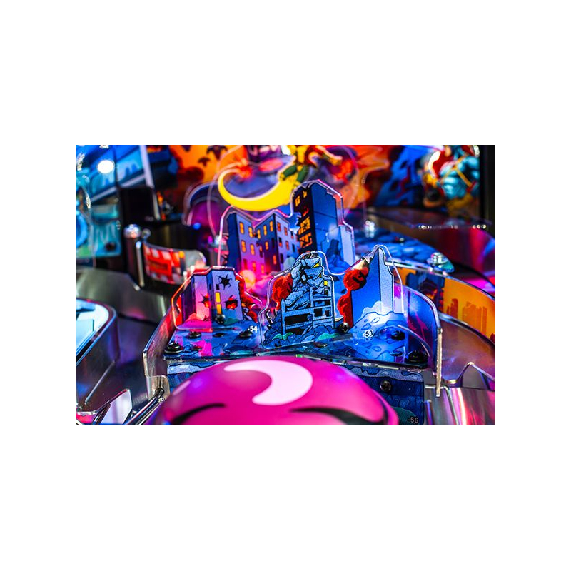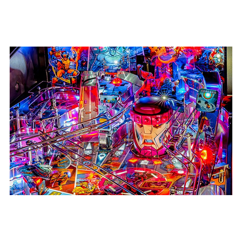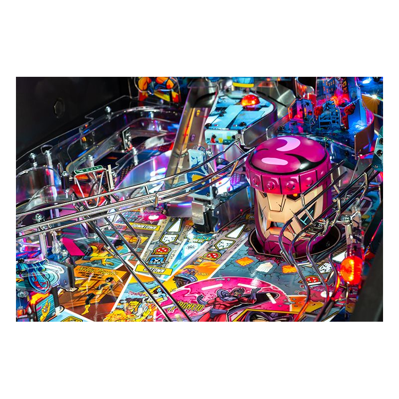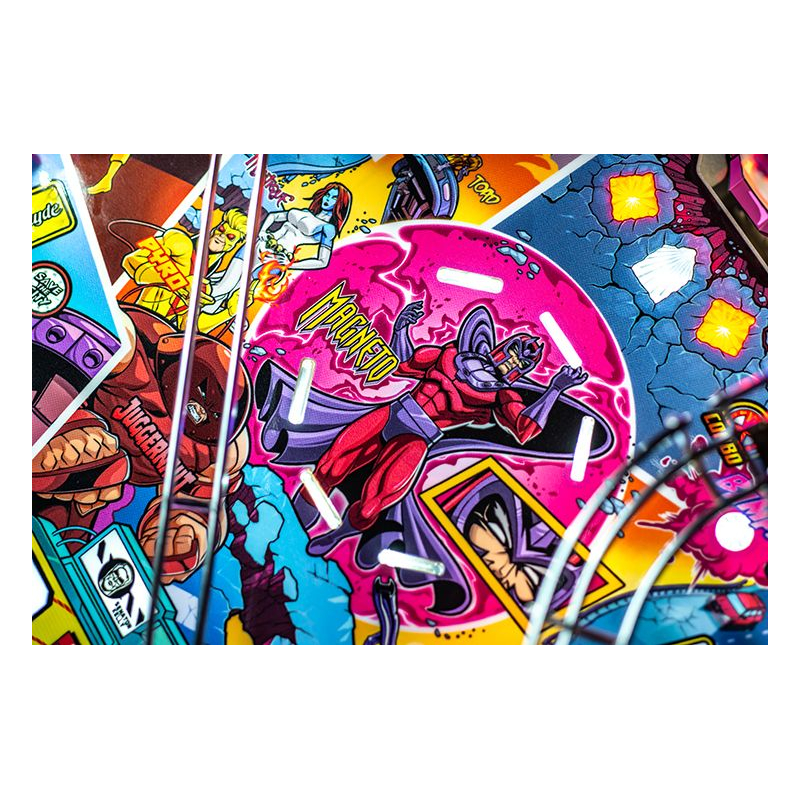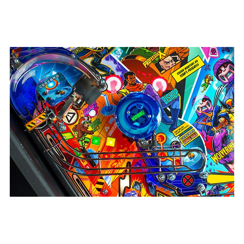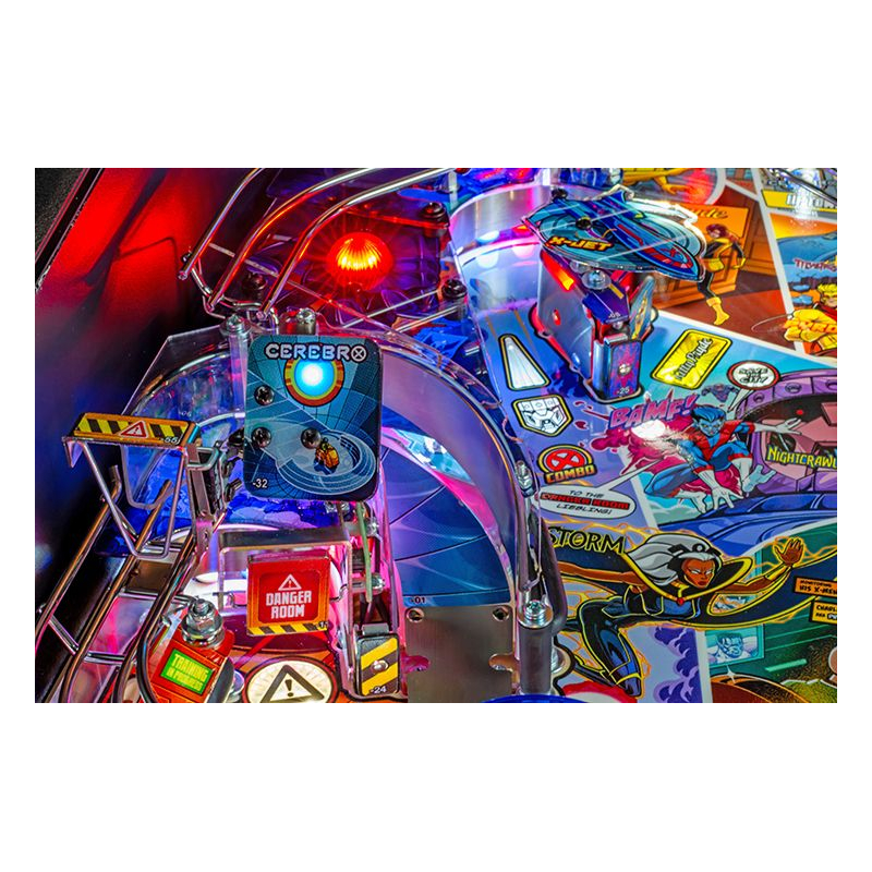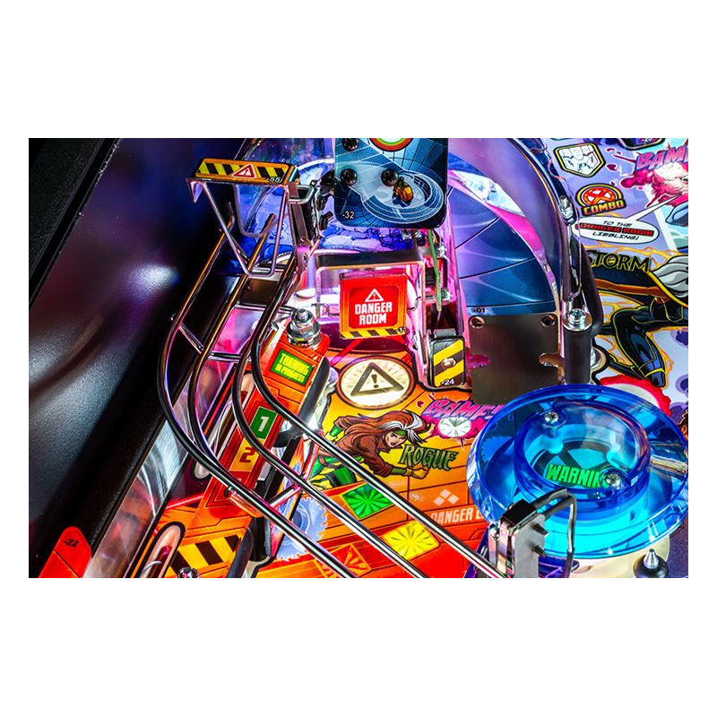 Le plateau de jeu Uncanny X-Men est unique en son genre, proposant une multitude de nouveaux croisements et rampes aux trajectoires surprenantes pour des sensations fortes garanties. La toute nouvelle Salle des Dangers, située à gauche des flippers principaux, offre une expérience à haut risque et à forte récompense grâce à un mini-flipper et un spinner de sortie inédit.
