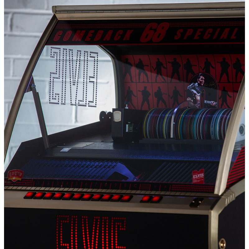 Découvrez le Juke-Box Elvis 68 Comeback – Rocket CD, une édition spéciale conçue par Sound Leisure, référence mondiale dans la fabrication de juke-boxes haut de gamme.