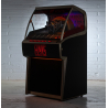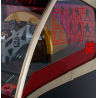 Célébrant l'énergie brute et l'allure légendaire d'Elvis en 1968, le meuble est revêtu d'un simili cuir vintage, dans la lignée de la tenue de scène du King. Des moulures métalliques en laiton brossé ajoutent une touche premium. Le célèbre logo « ELVIS » est découpé dans l'enveloppe supérieure et subtilement rétro-éclairé en rouge, créant un point focal captivant. À l'intérieur, un fond reproduit des silhouettes d'Elvis sur un dégradé noir et rouge, avec une image emblématique de sa performance.