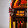 Le jukebox est également équipé d'un récepteur Bluetooth intégré pour un streaming sans limite depuis n'importe quel appareil compatible, ainsi que d'entrées et sorties auxiliaires pour se connecter facilement à d'autres systèmes audio intelligents comme Alexa ou Sonos. Il est possible d'ajouter des enceintes externes avec un réglage indépendant du volume, garantissant une flexibilité d'utilisation maximale, que ce soit pour un usage domestique ou professionnel.