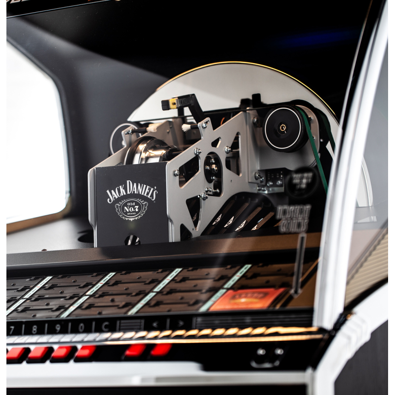 Ce jukebox vinyle est une édition officielle Jack Daniel's, alliant le charisme de la légendaire marque américaine à l'expertise artisanale britannique.