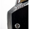 Son élégant boîtier noir mat, rehaussé d'inserts métalliques noirs et de détails chromés polis, reflète le caractère sombre et riche du célèbre whiskey.