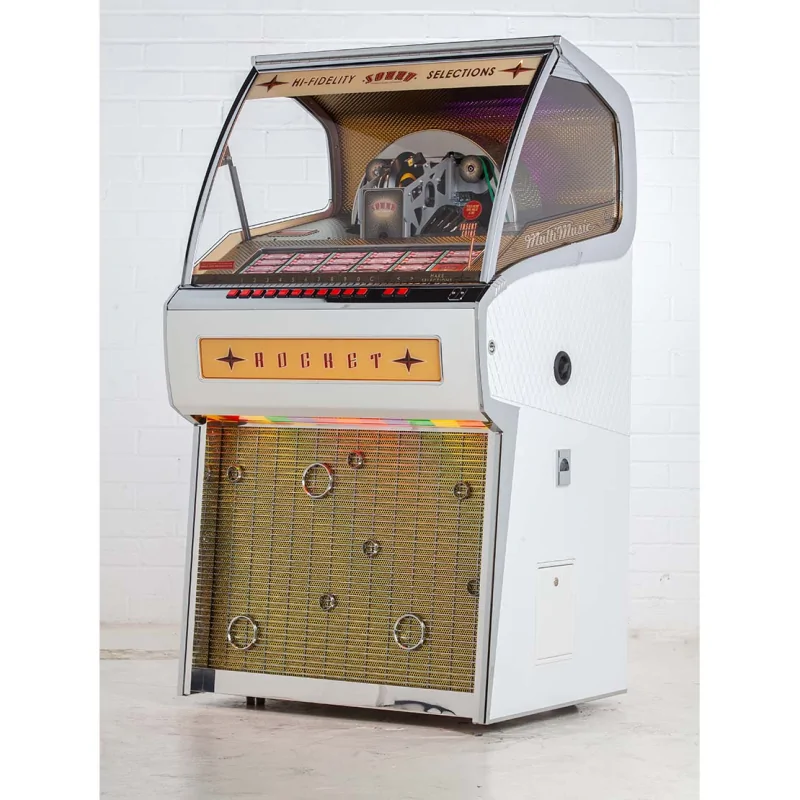 Le Rocket Vinyl Jukebox est l'unique jukebox vinyle grand format produit aujourd'hui. Il combine look vintage, mécanique sophistiquée, son haute fidélité, éclairage personnalisable et connectivité moderne. Il est idéal pour mélomanes, collectionneurs et décorateurs recherchant un centre musical à la fois élégant, authentique et fabriqué avec passion au Royaume-Uni.