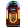 Redécouvrez la magie des années 40 avec ce jukebox au design emblématique, inspiré du célèbre Wurlitzer 1015. Chaque appareil est une véritable pièce d'art, avec un coffret monobloc en bois sculpté à la main, des colonnes de tubes à bulles couleur champagne, des éléments latéraux en aluminium chromé et une grille de haut-parleur élégante. L'ensemble offre un look rétro irrésistible, parfaitement adapté aux intérieurs vintage comme aux décors contemporains.