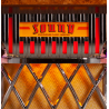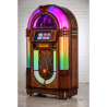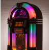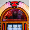 Inspiré du légendaire Wurlitzer 1015 des années 1940, le SL15 Slimline arbore un meuble en bois massif, des tubes à bulles champagne, des ornements chromés et une grille de haut-parleur stylisée, le tout réalisé à la main dans les ateliers de Sound Leisure au Royaume-Uni. Ce jukebox allie tradition artisanale et innovations technologiques : il est livré avec un système d'éclairage LED basse consommation (Diamond Pack) offrant 10 effets lumineux programmables et une gestion précise de l'intensité selon l'ambiance souhaitée.