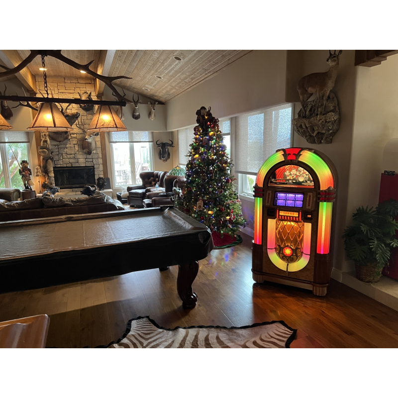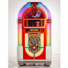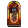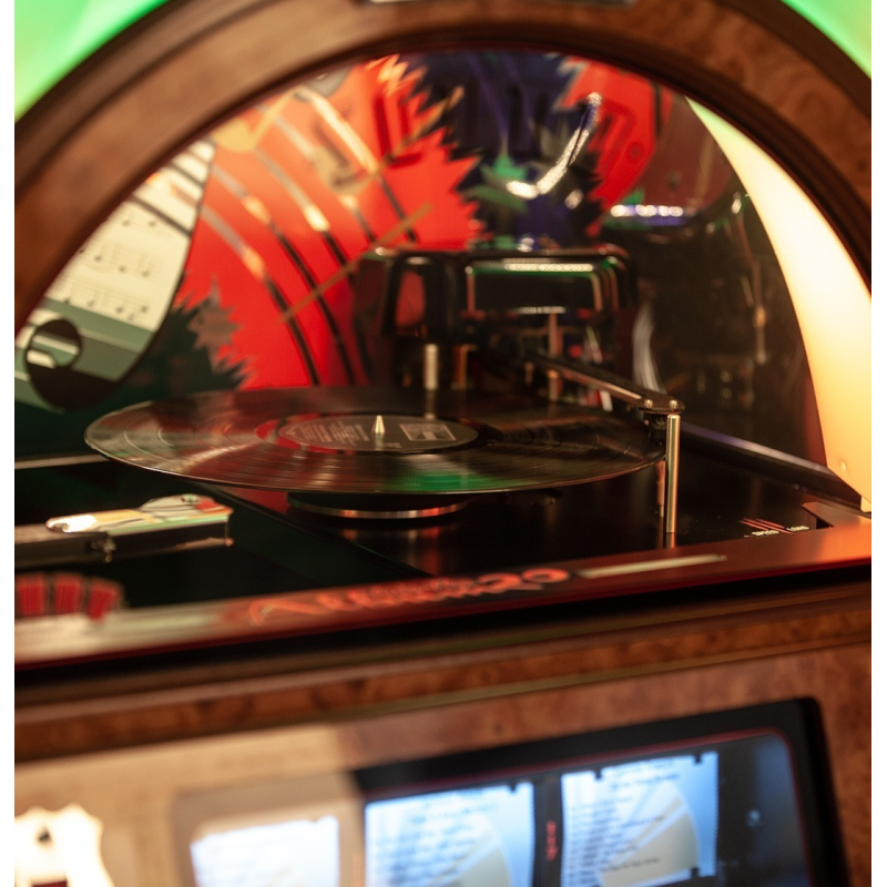 Livré avec l'éclairage LED Diamond Pack, ce jukebox propose 10 thèmes lumineux modulables et ajustables en intensité pour personnaliser votre ambiance. Les zones lumineuses (verrière, tubes à bulles, façade) sont réglables séparément pour une immersion visuelle complète et adaptée à chaque occasion.