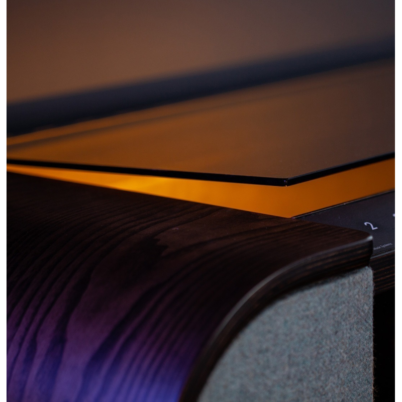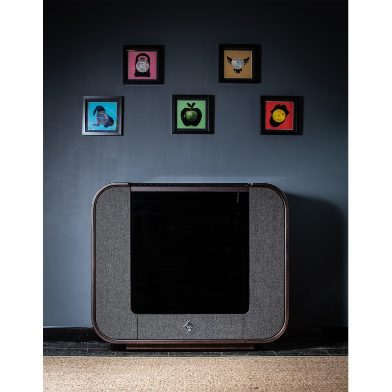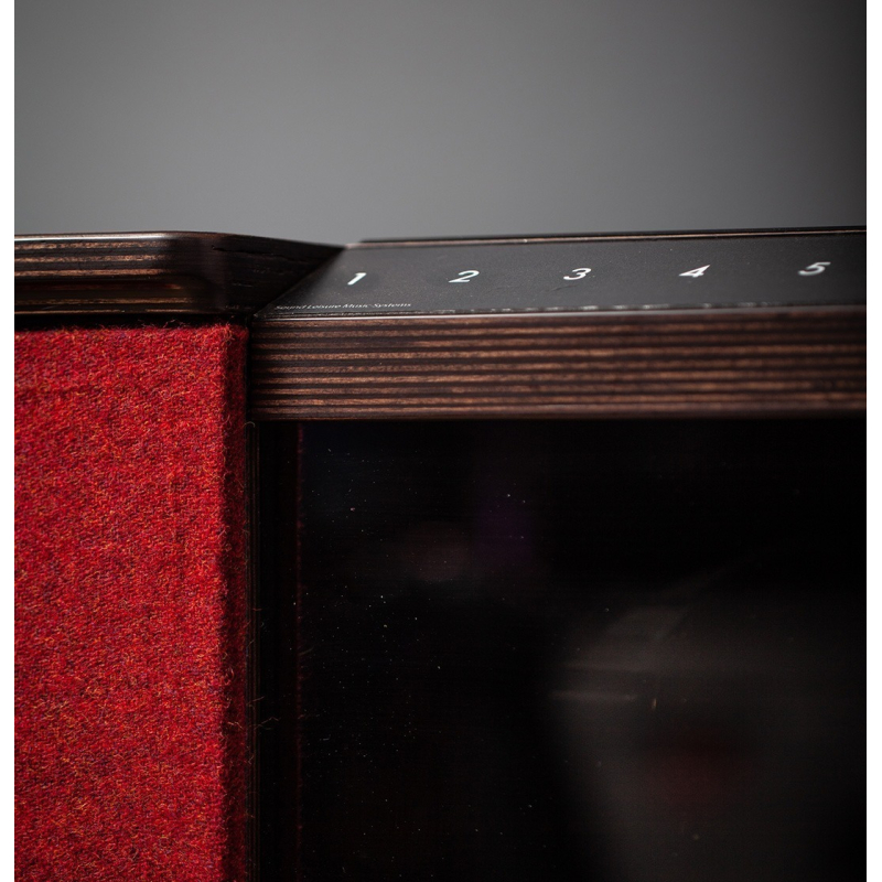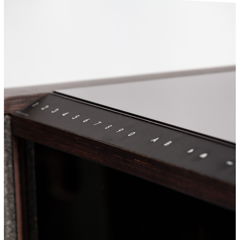 Fabriquée à la main au Royaume-Uni, la VLP-20 repose sur un élégant meuble en contreplaqué de bouleau multicouche, verni et poli. Le cache grille magnétique est interchangeable et disponible dans différents coloris, personnalisable via le service Custom Shop pour s'intégrer parfaitement à votre décor.