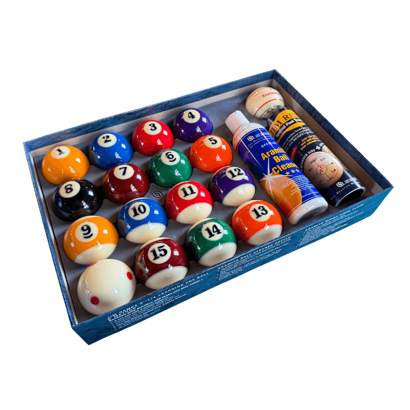 Le Kit Aramith Billes Américaines 57,2mm SuperPro est destiné aux joueurs de billard qui exigent une qualité de jeu optimale. Fabriquées par Aramith, marque de référence mondiale, ces billes utilisent une résine phénolique haut de gamme qui garantit une rondeur parfaite, une résistance exceptionnelle et une durabilité inégalée. Leur diamètre standard de 57,2mm en fait un jeu parfaitement adapté aux tables de billard américain utilisées en loisirs comme en compétition.