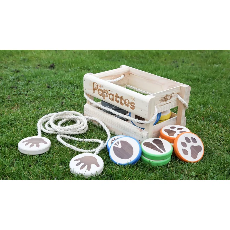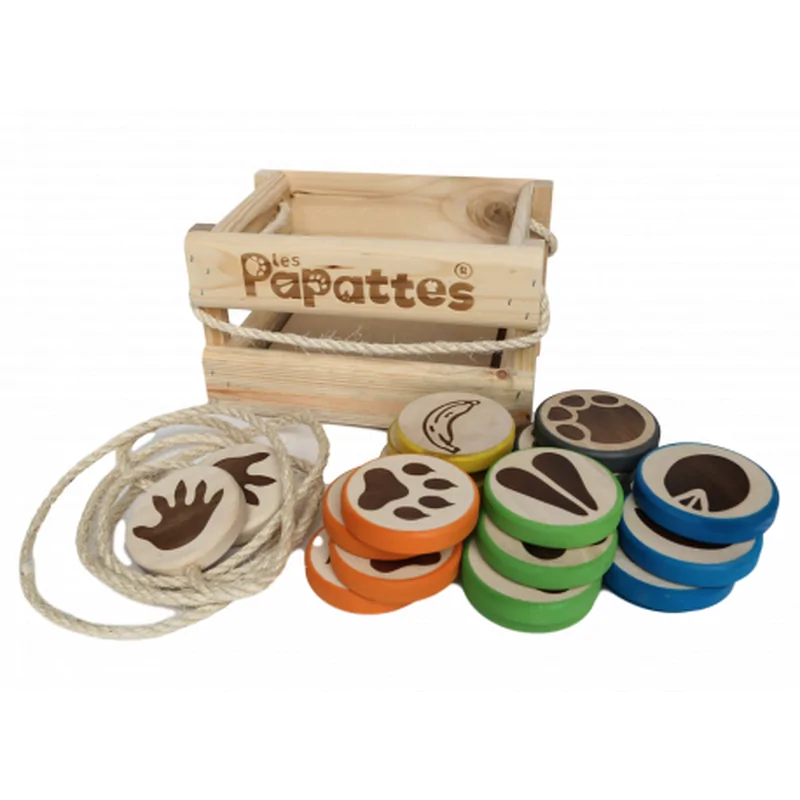 LES PAPATES est un jeu d'extérieur en bois, convivial et accessible dès 6 ans. Entièrement fabriqué en France, il revisite le jeu de palets traditionnel avec une touche ludique et colorée. Son univers animalier séduit immédiatement petits et grands, pour des parties dynamiques et pleines de rebondissements.