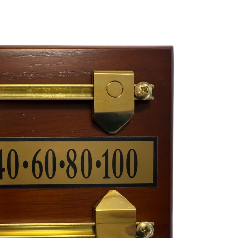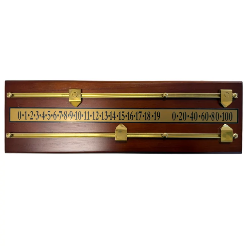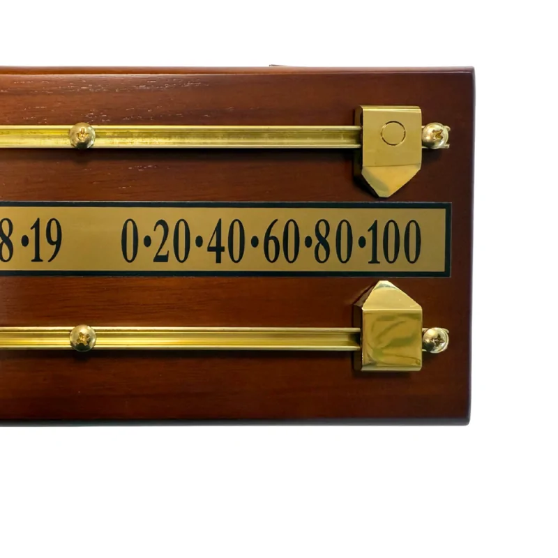 Son système de curseurs fluide et précis rend l'enregistrement des points simple et rapide pour chaque joueur. Les chiffres clairement lisibles assurent une visibilité optimale même à distance, rendant vos parties plus confortables et conviviales. Solide et durable, ce compteur de points en acajou est conçu pour résister à un usage intensif tout en conservant sa brillance et son élégance au fil du temps.