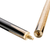 Le format 3/4 permet de combiner la rigidité d'une queue monobloc avec la praticité d'un modèle démontable, idéal pour le transport et le rangement. Le procédé collé de 9 mm, légèrement plus large que le 8 mm classique, offre une surface de contact plus généreuse, augmentant la tolérance et le confort de frappe. Cela permet de réaliser des coups plus stables et réguliers tout en conservant un excellent contrôle des effets et placements.