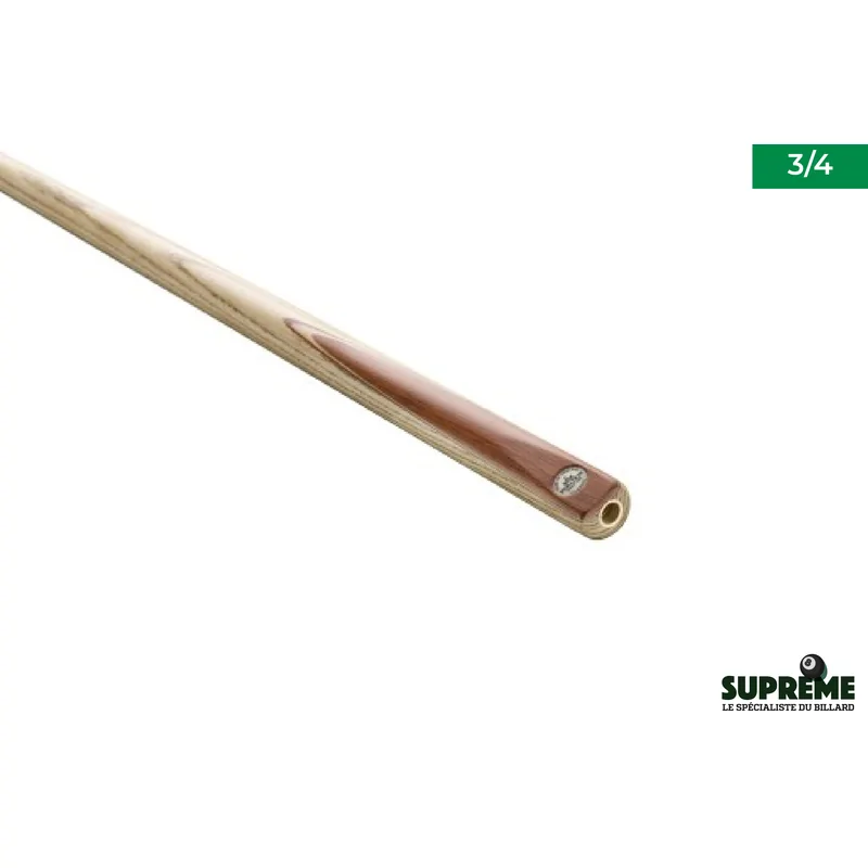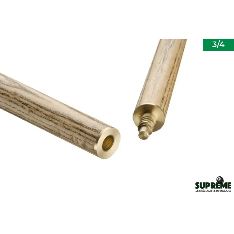 La queue utilise une jonction 1/2 qui facilite le démontage et le transport tout en maintenant une rigidité comparable à celle d'une queue monobloc. Le joint métallique ajusté avec soin assure une continuité parfaite entre la flèche et la crosse, garantissant une sensation de jeu fluide et équilibrée à chaque coup.