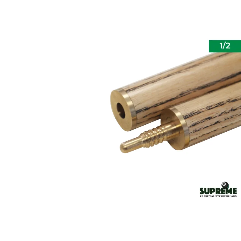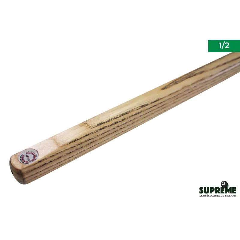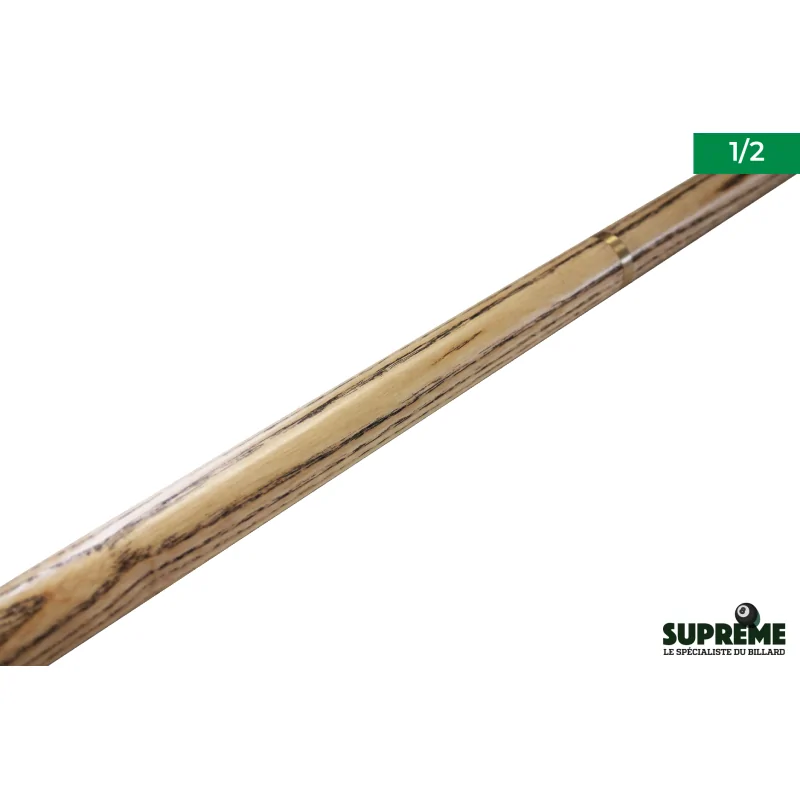 Le bois de frêne utilisé pour la conception du fût et de la flèche est soigneusement sélectionné pour son grain régulier et sa légèreté naturelle. Ce choix garantit une meilleure rectitude et une stabilité accrue dans le temps, limitant les risques de déformation. La jonction 1/2 permet de démonter facilement la queue pour le transport, tout en conservant une rigidité comparable à celle d'un modèle monobloc. Elle s'assemble rapidement grâce à un pas de vis robuste et précis, assurant une parfaite continuité entre les deux parties. L'embout de 9 mm de type ElkMaster, monté sur une virole en laiton, offre un excellent contrôle de la bille blanche. Ce diamètre est idéal pour le billard anglais (8-ball pool), favorisant les effets maîtrisés et les coups d'une grande finesse.