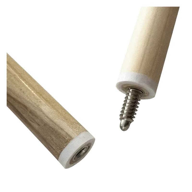 La queue mesure 145 cm une fois assemblée, offrant un compromis parfait entre puissance et précision. Sa virole en laiton assure la longévité de l'assemblage et protège la queue des chocs et de l'usure. L'embout vissé de 11 mm garantit un montage fiable et rapide, adapté aux queues standard de billard américain et français. La finition lisse améliore la prise en main et le confort lors des parties prolongées.