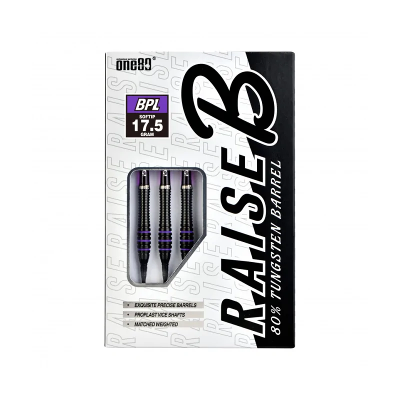 Set de 3 Fléchettes Raise B-PL Noire et Violette 80% Tungstène 17,5g Soft - D5636BPL