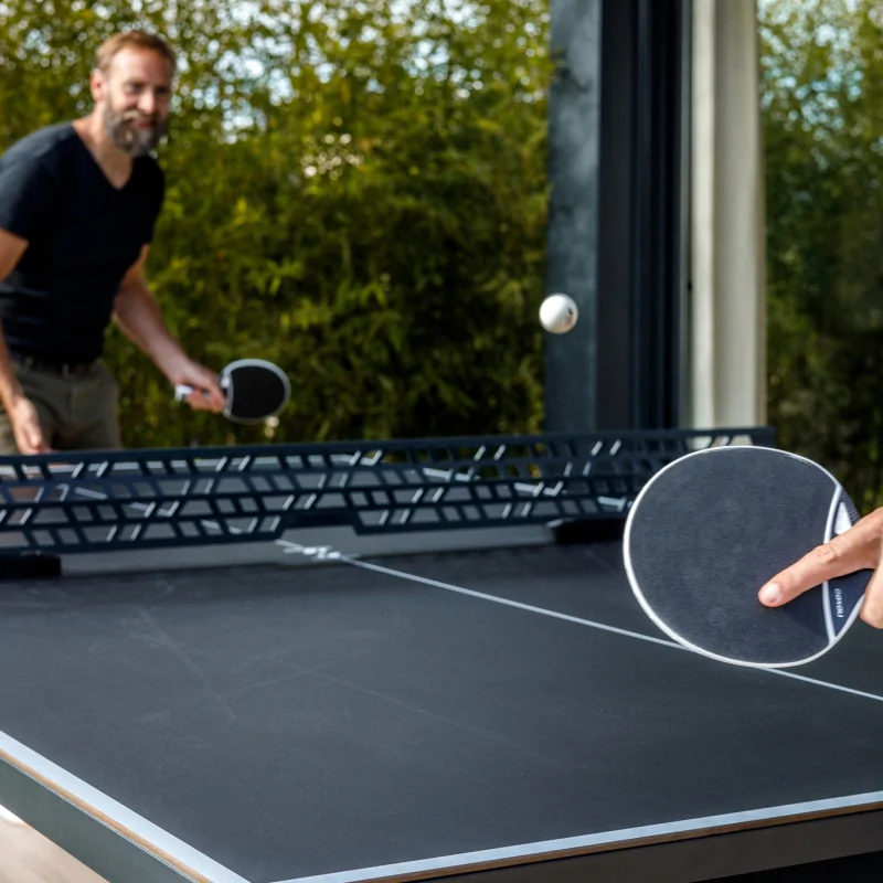 La table de ping-pong Origin Cornilleau Noire avec plateau noir et bandes blanches offre un contraste optimal pour suivre facilement la balle pendant le jeu. Son design contemporain et épuré s'adapte à tous les environnements, qu'il s'agisse d'un intérieur moderne ou d'un jardin, et apporte une touche d'élégance à votre espace de jeu. Conçue pour résister aux chocs et aux intempéries, cette table garantit stabilité et précision pour des parties intenses et conviviales.