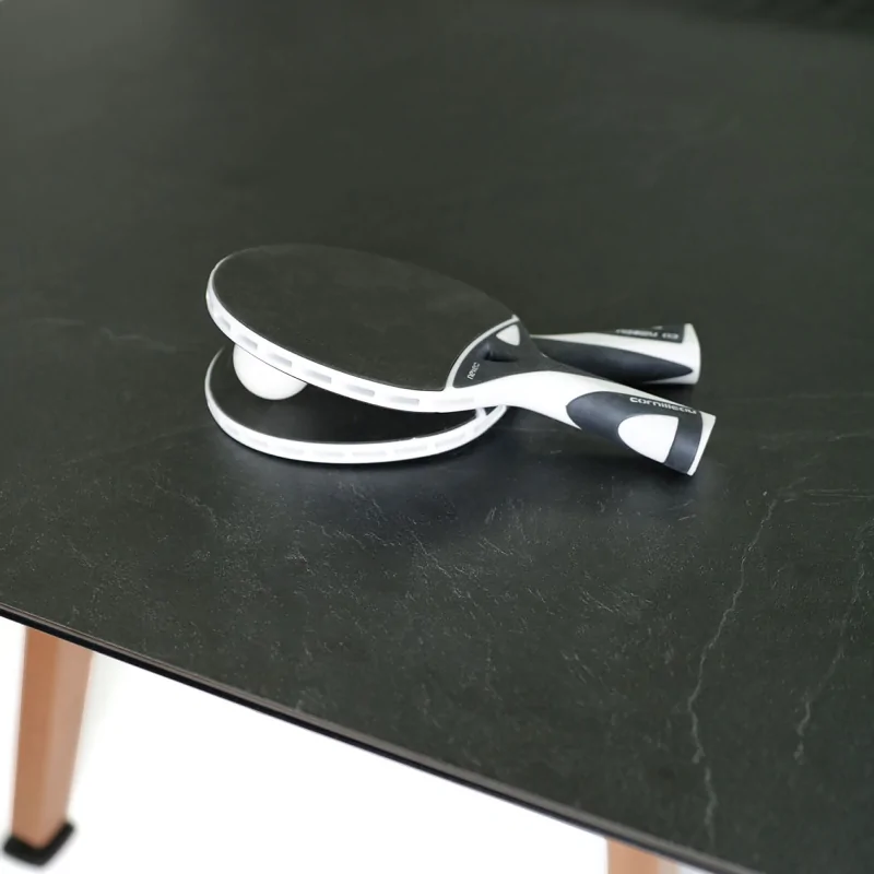 La table de ping-pong Origin Cornilleau Noire plateau Stone foncé est idéale pour les joueurs à la recherche d'une table durable, performante et esthétique, adaptée à tous types d'espaces et garantissant des parties de ping-pong intenses et conviviales.