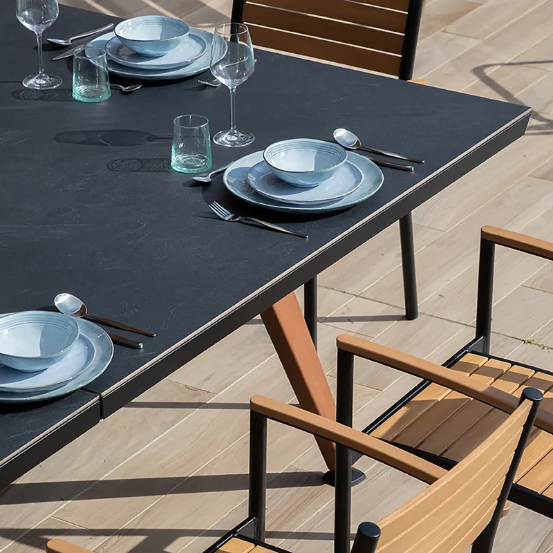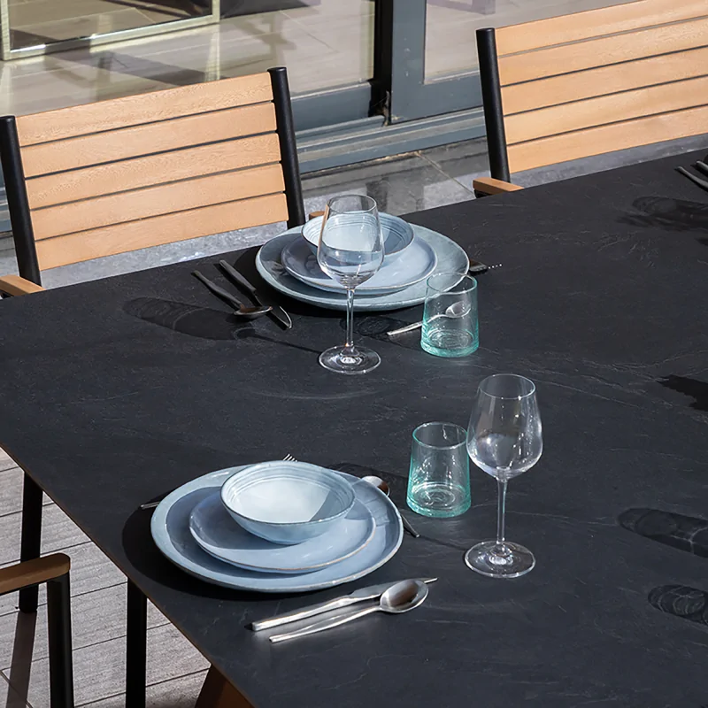 • Plateau Stone foncé en HPL résistant aux intempéries et aux chocs
