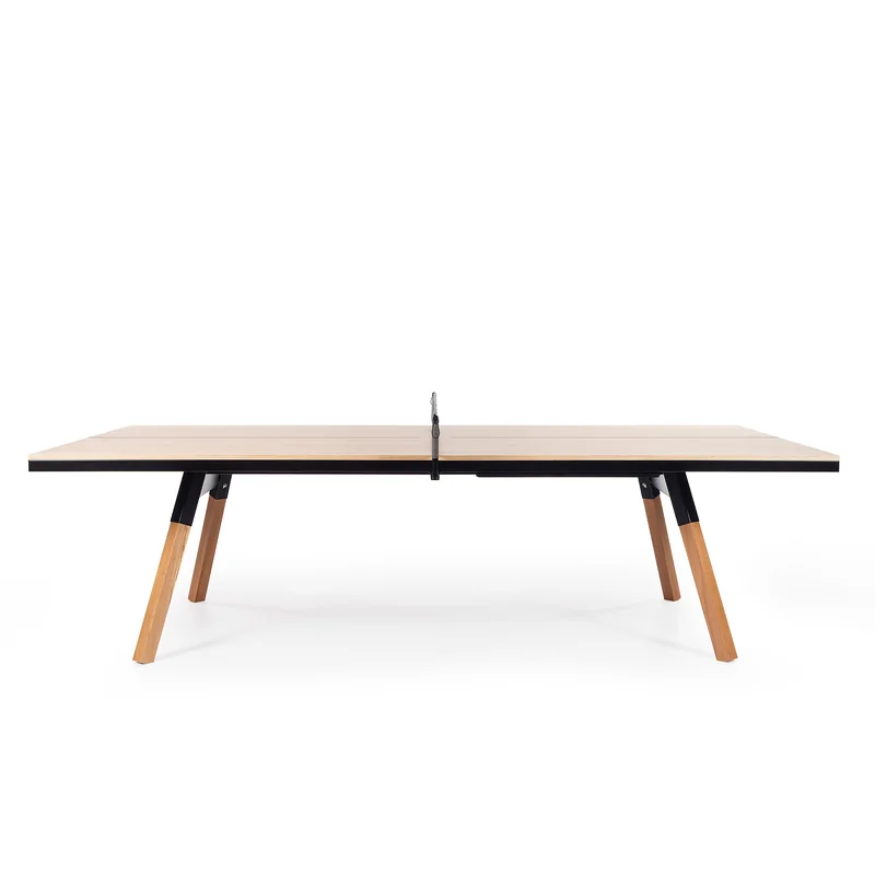 La table de ping-pong You and Me Standard, convertible en table à manger ou en bureau, combine élégance et praticité pour un usage exclusivement intérieur. Son plateau et ses pieds en bois massif chêne clair se marient à une structure en métal solide, offrant à la fois robustesse et esthétique. Ce modèle séduira les amateurs de ping-pong et les passionnés de mobilier design grâce à ses lignes épurées et son rendu visuel soigné. Il existe également avec un châssis blanc finition vernis mat pour varier les styles.