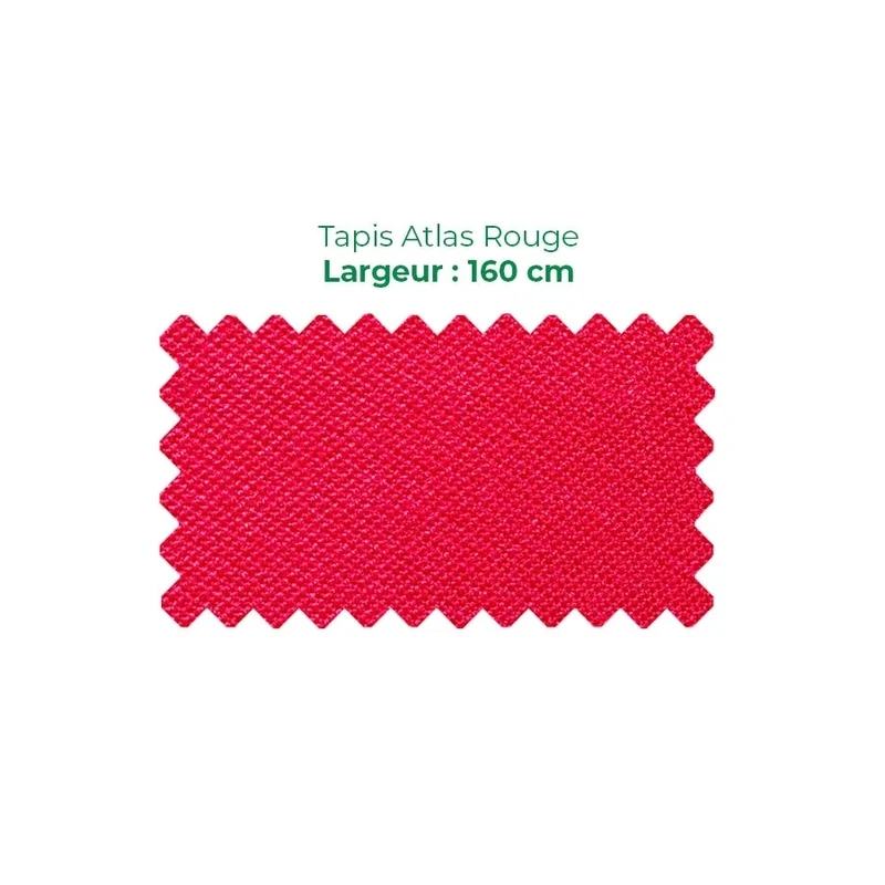 Le tapis Atlas Rouge de 160?cm de large est un drap de billard robuste et pratique, idéal pour les réparations, retouches ou créations sur mesure. Sa largeur généreuse permet de recouvrir une large surface de votre table, que ce soit pour remplacer une zone usée ou pour réaliser un projet spécifique. La couleur rouge apporte une esthétique dynamique et élégante, valorisant visuellement votre table tout en offrant une surface de jeu professionnelle.